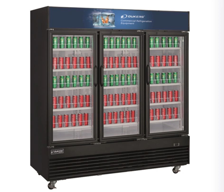 The Dukers DSM-69R 69.4 cu. ft. commercial display cooler refrigerator offers ample room for all types of drinks and beverages. Tempered glass doors with anti-fogging technology keeps your merchandise front and center for all browsing customers. The included 6 casters allow easy positioning and can be locked for security. R290 natural refrigerant is used for fast and more efficient cooling than traditional freon.